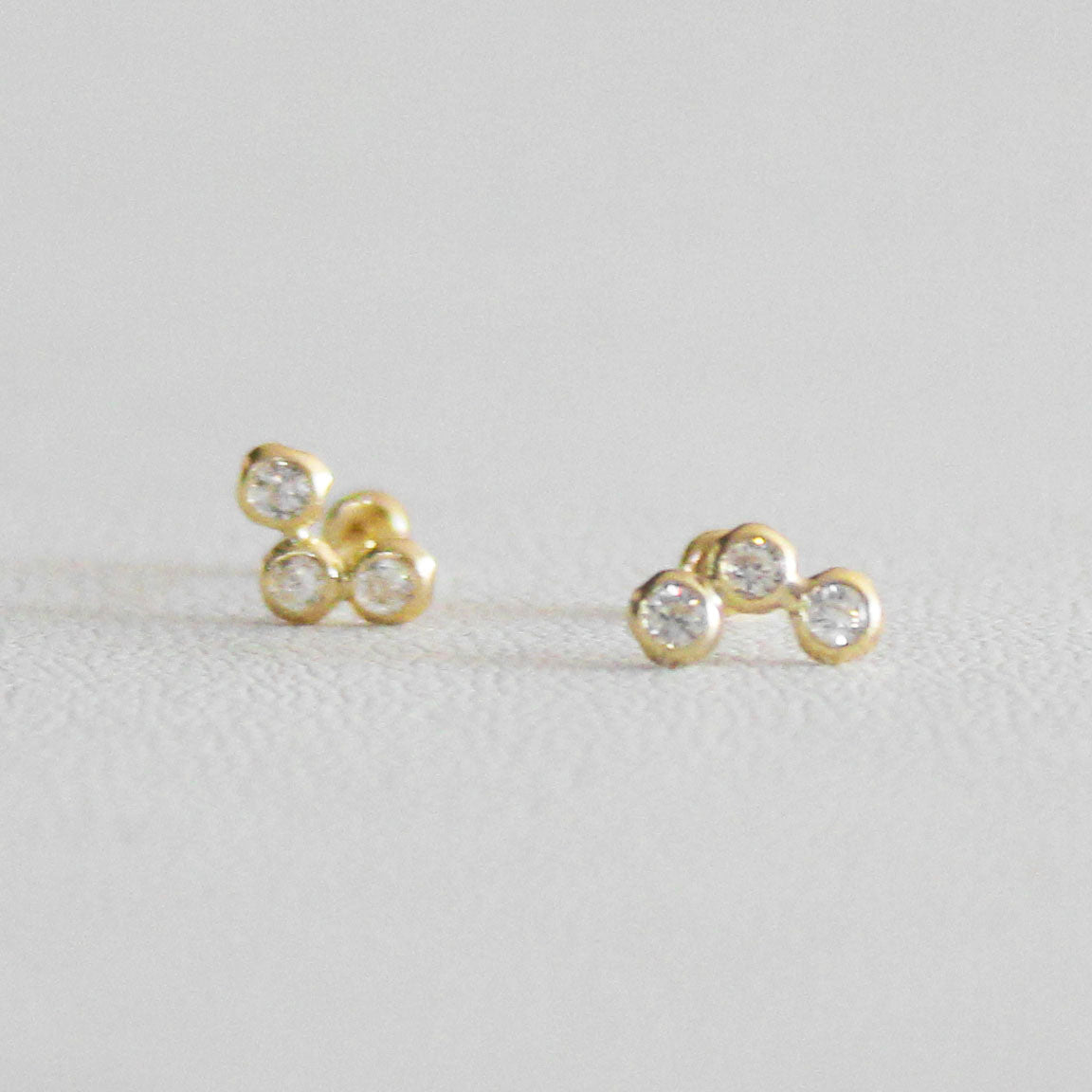 Broqueles de Oro 3 Zirconias